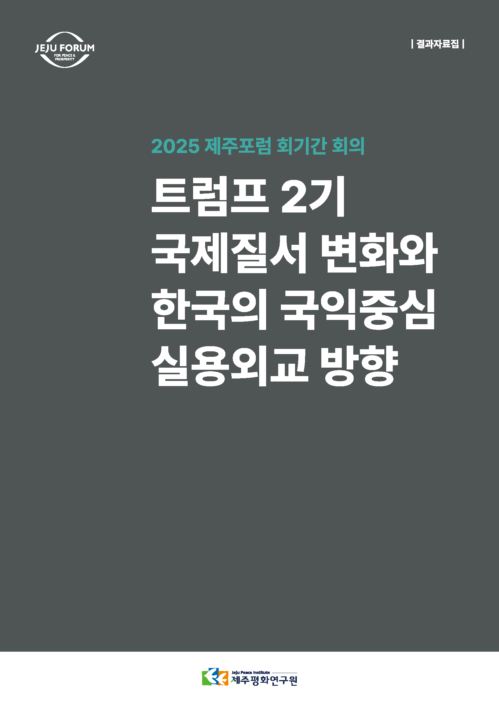 PDF Download2025 제주포럼 회기간회의 결과자료집2025년 11월 28일(금) 한국프레스센터에서 "트럼프2기 국제질서 변화와 한국의 국익중심 실용외교 방향"을 주제로 개최된 회기간회의의 결과자료집입니다. -